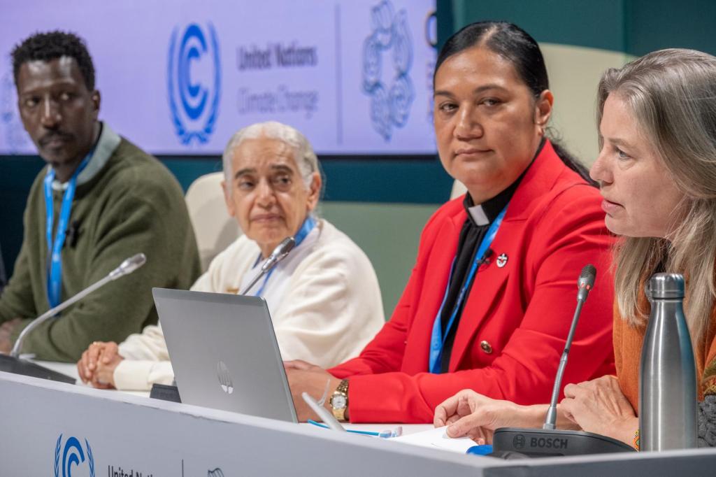 At the COP29 we prepared and translated toolkits for negotiators on the latest climate science, and booklets for grassroots action on ‘what we can do’. We distributed a briefing paper on the risks of geo-engineering reliance on carbon dioxide removal (CDR). We helped author an interfaith statement for the COP and helped plan and facilitate an interfaith Talanoa Dialogue with faith voices from around the world. We coordinated Quaker voices in global civil society demands for the COP Presidency to protect human rights in climate action. We co-hosted with Quakers in Britain and Quaker Earthcare Witness an official COP event titled, What Really Makes us Safe?, and in a COP Press Conference asked the same question before journalists: why do we beg for climate finance to support needed root cause transitions and help people experiencing loss and damage, while trillions are spent on weapons to oppress and kill? Throughout, we met with a diverse group of negotiators to talk through hopes and concerns, as part of our quiet diplomacy efforts here to build communication between countries.